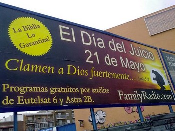 • De más reciente memoria, Harold Camping de Family Radio predijo que la Segunda Venida tendría lugar – probablemente tendría lugar, “¡porque yo no soy un profeta, sabe usted!” – en 1994; luego en Mayo, 2011; luego en Octubre, 2011. Él basó sus ideas parcialmente en su “descubrimiento” que el diluvio de Noé ocurrió en 4990 AC, y el resto fue añadido desde ahí. Antes de su muerte él se arrepintió de sus cálculos.