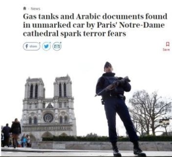 «Tanques de gasolina y literatura árabe encontrados en un carro fuera del catedral de Notre Dame inspiran temores de terrorismo»