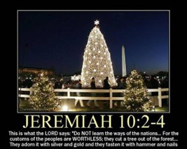 La primera vez que escuché sobre el árbol de Navidad fue durante mis años en Costa Rica, y solo después lo vi en inglés. Hay un meme del árbol de Navidad que anualmente colocan frente a la Casa Blanca; mide 5 o 6 metros. Bajo la imagen hay una advertencia, tomada de Jeremías 10:2-4 RV 60 – “Así dijo Jehová: No aprendáis el camino de las naciones, ni de las señales del cielo tengáis temor, aunque las naciones las teman. Porque las costumbres de los pueblos son vanidad; porque leño del bosque cortaron, obra de manos de artífice con buril. Con plata y oro lo adornan; con clavos y martillo lo afirman para que no se mueva”. El mensaje del meme es claro: los árboles de Navidad son ídolos; fueron específicamente condenados en Jeremías; y por lo tanto la Casa Blanca adora a un dios falso, ¡junto con otros que decoran un árbol de Navidad!