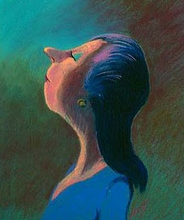 Un niño y su compañera yacen en sus espaldas, mirando hacia las nubes. “¡Esa se parece a una jirafa!” ella dice. “¡y esa a un camello!” “No, un camello no, míralo de arriba a abajo, se ve igual que un pulpo.” Un niño dice, ¡Un ángel!”; otro dice, “¡En realidad, se parece bastante a Charles Darwin!”