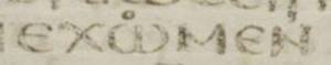 Aquí es el verbo en cuestión en Rom 5:1 Sinaítico. Noten el círuclo encima de la omega, ω. Es un omicron, la corrección agregada por un escriba posterior: